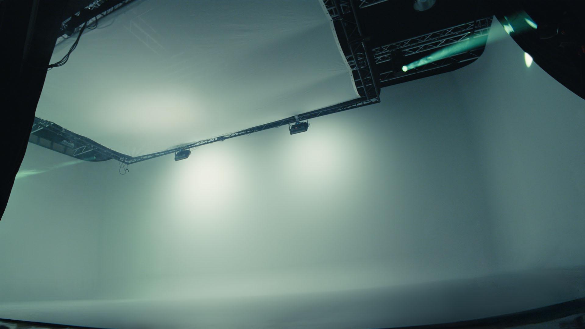 263 m² Hohlkehle über vier Wände oder verwandelbar in einen 360° Blackspace. Top und Background Hohlkehlenbeleuchtung inklusive.